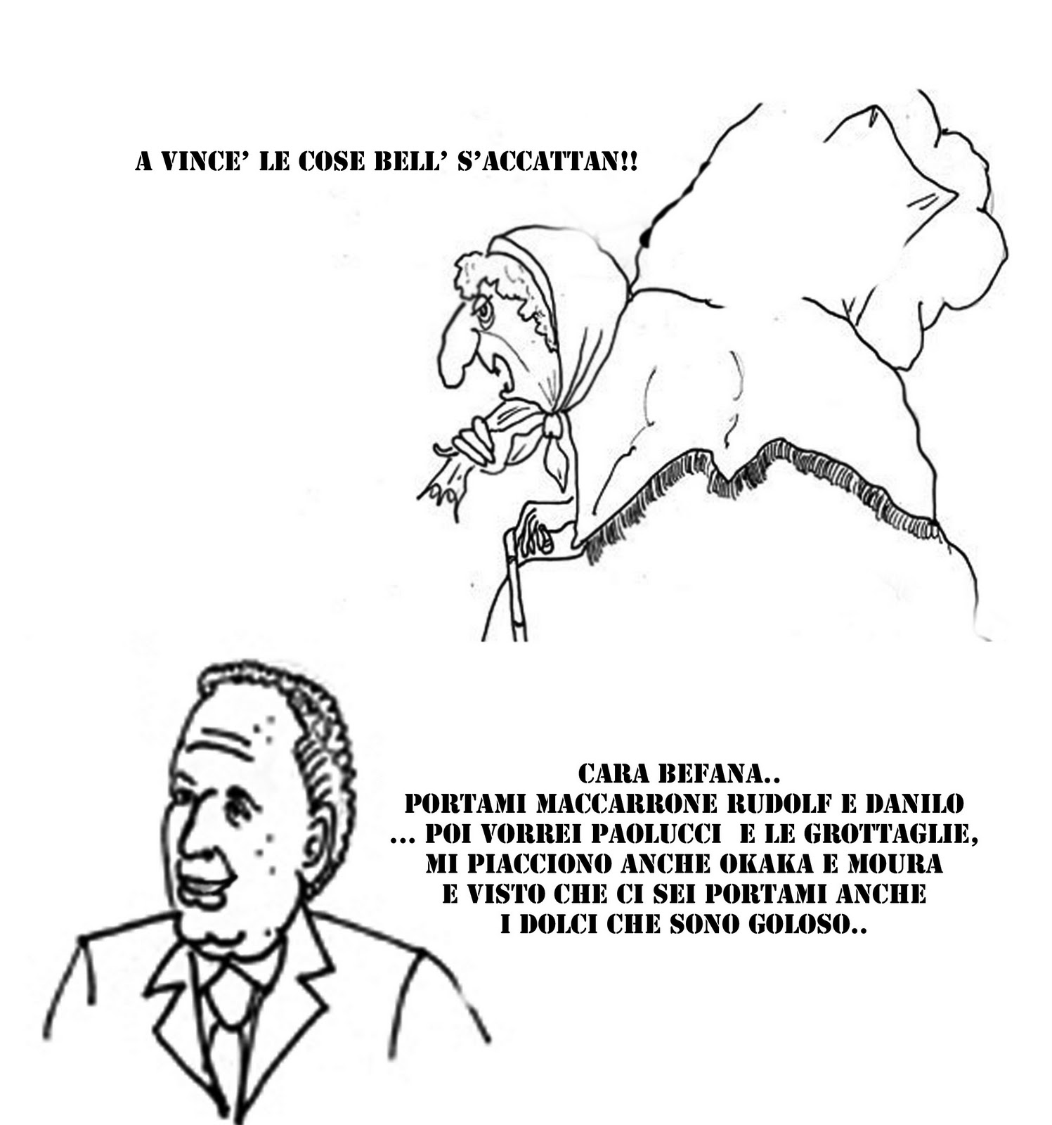 Caro presidente... la befana ha ragione! I regali di sti tempi non li fa nessuno e, perciò, le cose buone... bisogna comprarle!!! E se lei ha già premesso che non ci sono soldi per il mercato... cosa ci dovremmo aspettare? La serie "A" è un patrimonio che non vuole perdere, lo va ripetendo spesso in giro, ma magari si è fatto due conti e, tra un patrimonio da perdere e uno da investire, sicuramente ha già fatto la sua scelta.... Fino a quando i tifosi, secondo lei, crederanno ancora nella Befana?